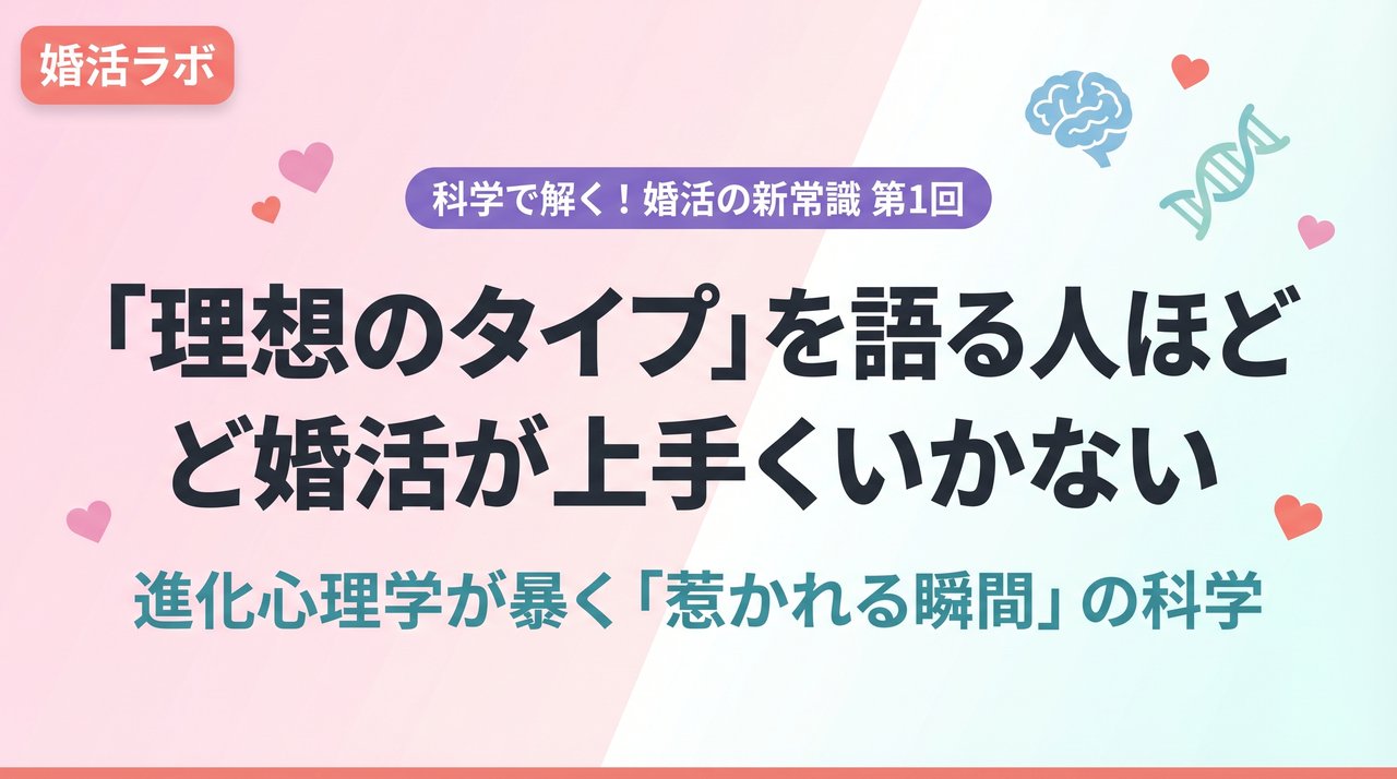 実は心理学の研究が、ある衝撃的な事実を明らかにしています。「事前に語った理想の条件」と「実際に惹かれる相手」は、かなりの確率でズレているのです(Eastwick & Finkel, 2008)。進化心理学と最新の心理学研究を読み解きながら、婚活の「本質」に迫ります。